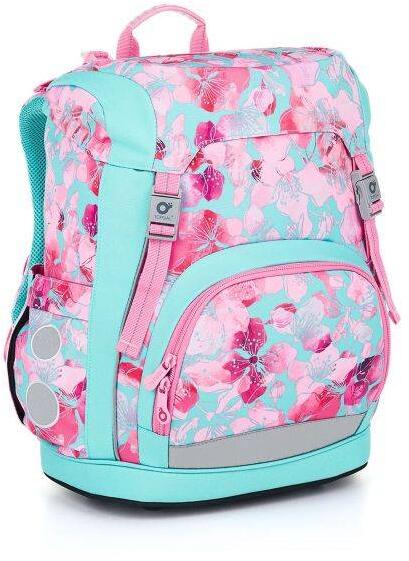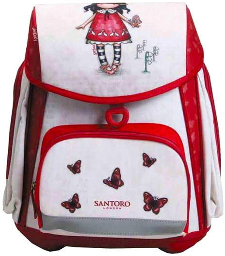 Santoro Time To Fly mágneszáras iskolatáska. A táska egy nagyobb, csattal záródó, egy kisebb, cipzárral záródó és két oldalsó, cipzárral záródó zsebbel rendelkezik. A táska háta és vállpántja párnázott, a vállpántok és a mellkaspánt hossza állítható. Az iskolatáska alja megerősített. Méretei: 33 x 41 x 15 cm.