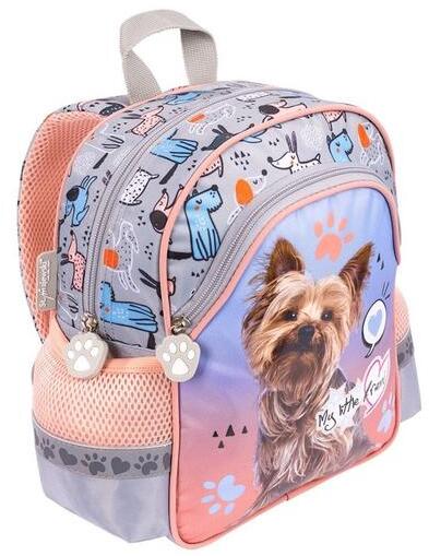 My little friend - Kutyás ovis hátizsák (668449) egy cuki yorki kutyussal díszített, mely az óvodás korosztály számára készült. Egy nagyobb és egy kisebb cipzáras rekeszbe lehet pakolni a szükséges holmikat, illetve mindkét oldalán egy kis hálós zseb található, melyben tárolhatod kulacsodat. Kézben és vállon is kényelmesen hordható, állítható vállpántja párnázott