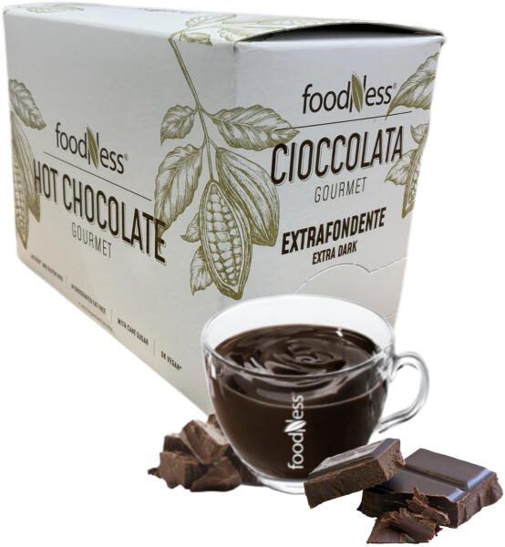 Foodness Extra keserű forró csokoládé 450g ÚJ A CR-ben!!! Kóstolja meg a legjobb minőségű olvadó olasz csokoládét. Hozzávalók: Nádcukor, kukoricakeményítő. Kakaó 22/24 (23,5%), zsírtalanított kakaópor (8,5%). Fűszerek, só. Tömítőszer: E341(III). Nyomokban tejet, tejkultúrát és dióféléket tartalmazhat. Elkészítési útmutató: ízlés szerinti csokoládét tejjel