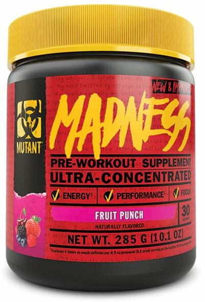 A MUTANT legújabb kreációja kreatint, arginint, citrullint, béta-alanint és még számos kiváló hatóanyagot tartalmaz. A Madness 5-féle koffeinforrást vonultat fel, összesen 335 gramm koffeinnel. Adagolás Kizárólag tapasztalt, felnőtt sportolóknak ajánlott Első használatkor fél adagolókanállal keverj el 2-2,5 dl vízben, rázd össze 5-10 másodpercig, fogyaszd el 30 perccel