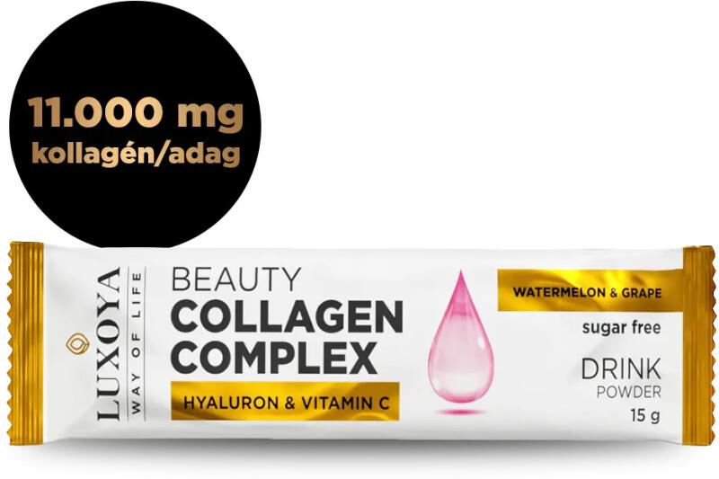 A Görögdinnye-szőlő ízű Luxoya BEAUTY COLLAGEN COMPLEX 11.000 mg étrend-kiegészítőnk a maximális hatékonyság érdekében kombinálja a kollagént és a hialuronsavat. Prémium minőségű formulánk kifejezetten azok számára készült, akik a bőrük fiatalságát és rugalmasságát kívánják megőrizni. Elkészítés: Keverjünk el 1 adag (15 g) terméket 450 ml vízzel shakerbe