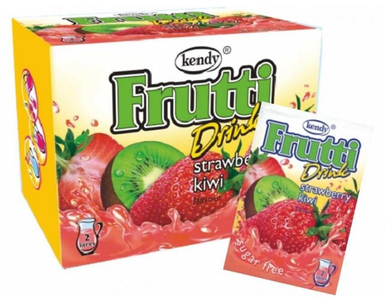 Frutti kiwi-eper italpor 24x8,5g Hivatalos magyarországi forgalmazótól. Leírás: Azonnal oldódó instant italpor, édesítőszer hozzáadásával, cukor nélkül. 1 tasakból 1,5L kiwi-eper ízű üdítő készíthető víz hozzáadásával