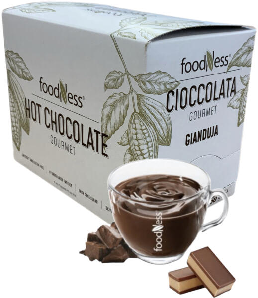 Foodness Nougat forró csokoládé 450g ÚJ A CR-ben!!! Kóstolja meg a legjobb minőségű olvadó olasz csokoládét. Hozzávalók: Nádcukor, kakaó 22/24 (22,0%). Kukoricakeményítő, aromák. Só. Tömítőszer: E341(III) Nyomokban tejet, tejkultúrát és dióféléket tartalmazhat. Elkészítési útmutató: ízlés szerinti csokoládét tejjel elkeverjük és felforraljuk, majd a forrásp