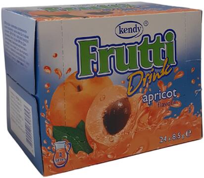 Frutti sárgabarack ízű italpor 24x8,5g Hivatalos magyarországi forgalmazótól. Összetevők: töltőanyag (maltodextrin), étkezési sav (citromsav), édesítőszerek (nátrium ciklamát, acaszulfám K, szacharin, aszpartam-fenilalanin forrást tartalmaz), aromák, színezék (E150d, E102), homályosodó szer (maltodextrin, gumi arabika, titán- dioxid).