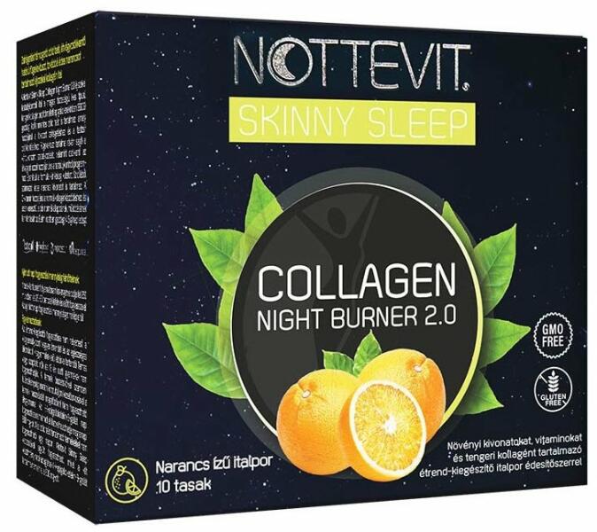 A Nottevit Collagen Night Burner 2.0 éjszakai kollagén komplexe igazán meggyőző összeállítás: Erős, 2 az 1-ben hatás koffeinmentes zöld tea kivonattal és tengeri kollagénnel az éjszakai zsírégetésért és kollagén-feltöltésért Különlegesen tiszta, japán zöld tea kivonata fokozza az éjszakai zsírégetést anélkül, hogy álmatlanságot okozna (koffeinmentes) Tengeri kol