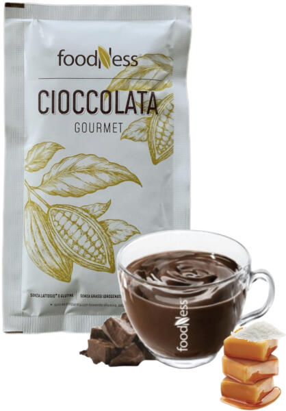 Foodness Gourmet sós karamell forró csokoládé 30g A legjobb olasz minőségű forró csokoládé sós karamell ízzel Hozzávalók: nádcukor 23,5% Kukoricakeményítő. Só. Vanillin. Karamell E150a. Ízesítés és színezés. Elkészítési útmutató: ízlés szerinti csokoládét tejjel elkeverjük és felforraljuk, majd a forráspont elérése után a csokoládé besűrűsödik és már