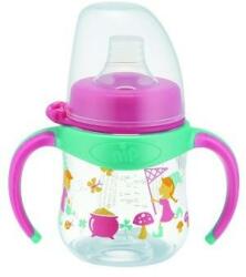 Polipropilén szélenyakú tanulópohár fogóval, 150ml szilikon cseppmentes puha itatócsörrel, BPA mentes. Ajánlott 6 hónapos kortól. Anti Colic szeleppel a levegőnyelésből adodó hascsikarás megelőzésére.