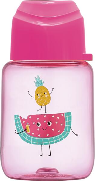 A Moi 330 ml-es színes mintás kulacs dinnye designnal tökéletes választás a mindennapi használatra. A színes dinnye minta vidám megjelenése szórakoztatóvá teszi az ivást, így a kicsik még nagyobb örömmel fogyasztják italaikat.