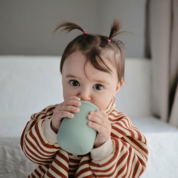 Hidratálás könnyedén és stílusosan A csöpögésmentes itatópohár kifolyásbiztos, levehető fedéllel. Méretének köszönhetően könnyen illeszkedik a kicsi kezekbe. Az élelmiszeripari szilikonból készült termék ivócsőre védi a fogakat, miközben a strapabíró anyag ellenáll a rágcsálásnak is. A halvány türkiz szilikon itatópohárral a kicsi kedvenc itala mikrohullámú