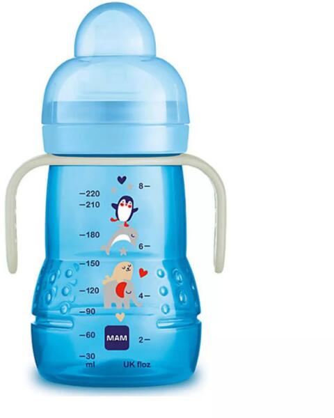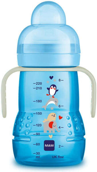 MAM Trainer night tanulópohár 220 ml – világító fogantyúval Első lépés az önálló iváshoz Ideális az önálló iváshoz, az átállához a szoptatásról vagy a cumisüveg használatról az ivópoharakra. Nem csepeg és könnyen kézben tartható. Speciálisan a kis babakezekhez tervezett fogantyúk. Az ivőcsőr komptatibilis a MAM cumisüvegekkel. Széles nyílások az egyszerű t