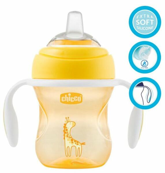 A Chicco Tanuljunk meg ivópohár ideális a fokozatos, kényelmes és egyszerű átmenethez a szoptatásról vagy az üvegből való ivásról az első pohárra és önálló ivásra. Jellemzők: ideális első lépés a pohárból való iváshoz szuper puha és hajlékony szájdarab megkönnyíti az ivást és egyben gyengéd a gyermek érzékeny ínyéhez speciális rendszer megakadályozza a k
