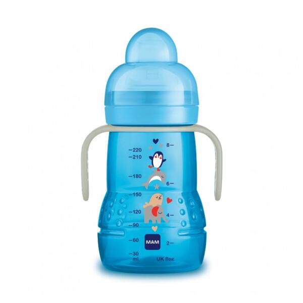 MAM Trainer tanulópohár - 220ml A Trainer ebben optimálisan segíti őket, mert a kis fogókat a babák könnyen tudják saját maguk kézben tartani. MAM Trainer tanulópohár - 220ml Jellemzői: - 6 hónapos kortól - innováció - megkönnyíti az átmenetet a szopásról vagy a cumisüvegről a pohárra - funkcionális design - széles nyílások az egyszerű betöltéshez és tisztításho