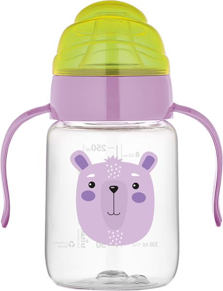 A Zuzu 330 ml-es itatópohár maci mintával ideális választás babáknak, Tritan anyagból készült, amely biztosítja a hosszú élettartamot és a tartósságot. A pohár beépített szívószálas kialakítása egyszerűvé és kényelmessé teszi az ivást a kicsik számára. A tartós Tritan anyag ellenáll a törésnek és könnyen tisztítható, így tökéletes kiegészítő a baba min