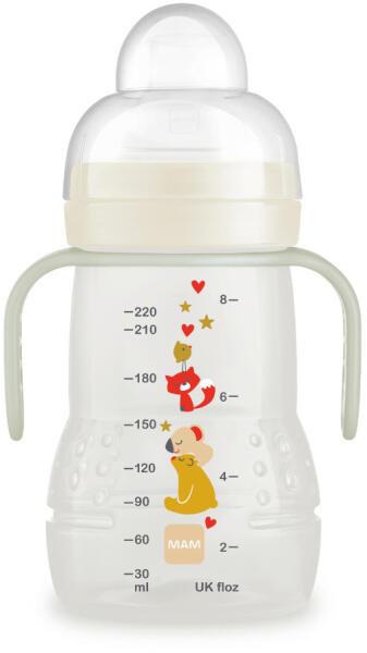 A Baby Bruin tanulópohár kiválóan alkalmas arra, hogy megtanuljon önállóan inni. Kényelmes fogantyúi segítik a gyermeket a csésze tartásában. A széles nyak megkönnyíti a mosást és a folyadékok öntését. A szájrész puha szilikonból van, így nem irritálja a baba finom ínyét. A fogantyúk eltávolításával a tanulópoharat könnyedén vizespalackká alakíthatja nagyobb
