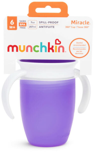 Munchkin Miracle itatópohár 360 fokos csöpögésmentes szeleppel. A pohár pereméről bárhonnan ihat a baba, kialakítását kifejezettek a kis kezekre tervezték. Munchkin Miracle Cup itatópohár, 296 ml (lila) A Munchkin Miracle cup egy 360 fokos itatópohár, amelynek pereméről bárhonnan ihat a gyermek, nem kell aggódni a csöpögés miatt. Speciális szelepes teteje használat után