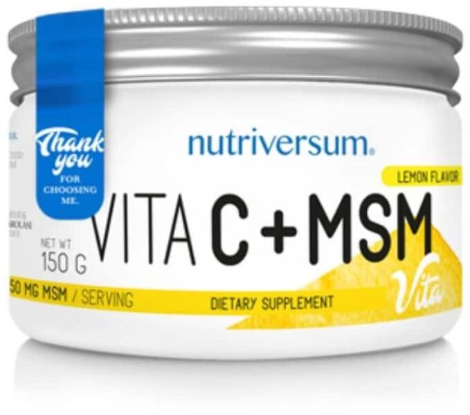 Nutriversum Vita C+MSM por: Ízesített, instant C-vitamin formula MSM-mel kiegészítve. Ez a prémium minőségű étrend-kiegészítő adagonként 1500 mg C-vitamint és 350 mg MSM-et tartalmaz, támogatva az immunrendszert és a szervezet normál működését. Frissítő citromos ízével könnyedén beilleszthető a napi rutinba.
