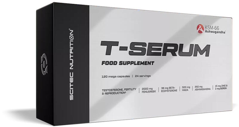A T-Serum egy 6 összetevős hormonoptimalizáló komplex. A már jól ismert növényi hatóanyagok kivonata mellett, mint a Fenugreek (görögszéna) mag kivonat, a béta-ekdiszteron spenót levélből kivonva, a trademarkolt KSM-66 ®Ashwagandha és a Maca kivonat mellett helyet kapott még a cink és a bór is a formulában. TARTALMAZ: 2000 mg görögszéna mag kivonat 750 mg spenót levél ki