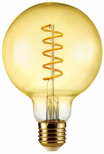 Led Filament 6W körte, 500 lumen, borostyánsárga üveges dekor led. Csavart izzószálas, extra meleg 2100 kelvin, meleg fehér. 125mm fejátmérő, D125xH175 mm. 60W hagyományos izzó helyett! 360°-os szórásszög, 30.000 óra élettartam! A borostyán burája és az extra meleg színe miatt különleges design világítás, akár egy szál vezetéken lógva is hangulatos! Nem vibrál a fé