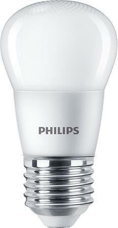 LED izzó, E27, kisgömb, P45, 5W, 470lm, 2700K, PHILIPS "CorePro" - PLED53 - LED égők E27-es foglalattal - foglalat: E27 -névleges élettartam (névleges): 15000 h -kapcsolási ciklusok száma: 50000X -fényáram (névleges): 250 lm -színmegjelölés: Meleg fehér (