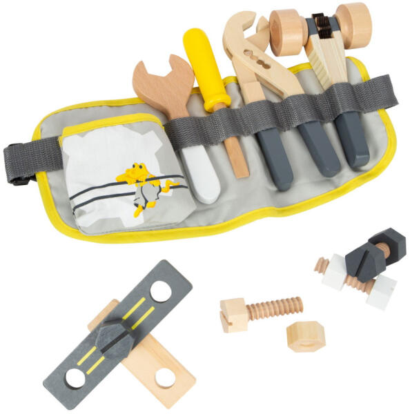 Small foot állítható szerszámöv realisztikus színekkel és az igazihoz hasonlító fa szerszámokkalA szerszámöv praktikus szerszámtartó! Ezzel az állítható szerszámövvel a derekukon a kisiparosok szabadon hagyják a kezüket, és felszereléseik mindig kéznél vannak! A szerszámöv tele van igazi szerszámokhoz hasonló szerszámokkal, amelyek csavarhúzókból, csavarkulcsokból
