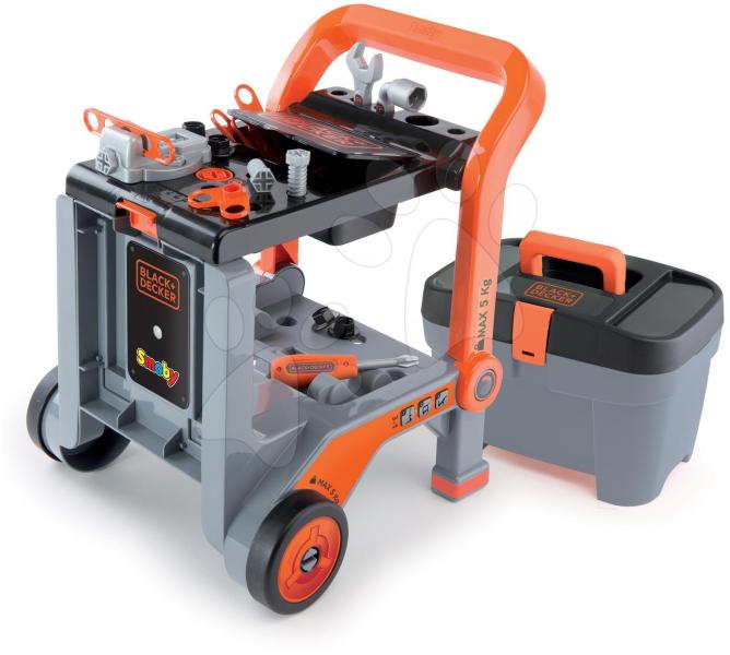 Játék szerelőkocsi Black&Decker Devil Workmate 3 az 1-ben szuper játék kis ezermesternek. Az egész szerelőkocsi a kiegészítőket is beleértve kiváló minőségű műanyagokból készült, melyek ellenállóak és sokáig kitartanak, egyben érintésre kellemesek és egészségre ártalmatlanok. A fokozott biztonság érdekében figyelmet szenteltek a lekerekített éleknek is. Több