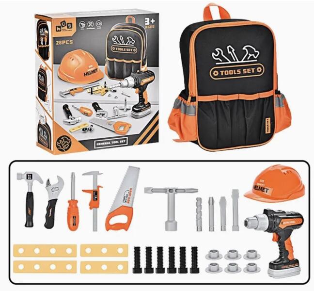 Mappy Tool játékkészlet fúróval, fűrésszel, sisakkal és hátizsákkal, 28 darab Ez a gyerekszerszámkészlet tökéletes megoldás a kis kézművesek számára, akik biztonságos és oktató módon szeretnék felfedezni a barkácsolás titkait. A kifejezetten 3 évesnél idősebb gyermekek számára készült készlet olyan eszközöket tartalmaz, amelyek tökéletesek ajándékozáshoz é