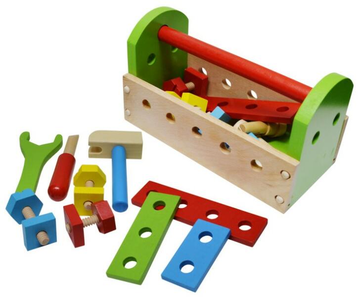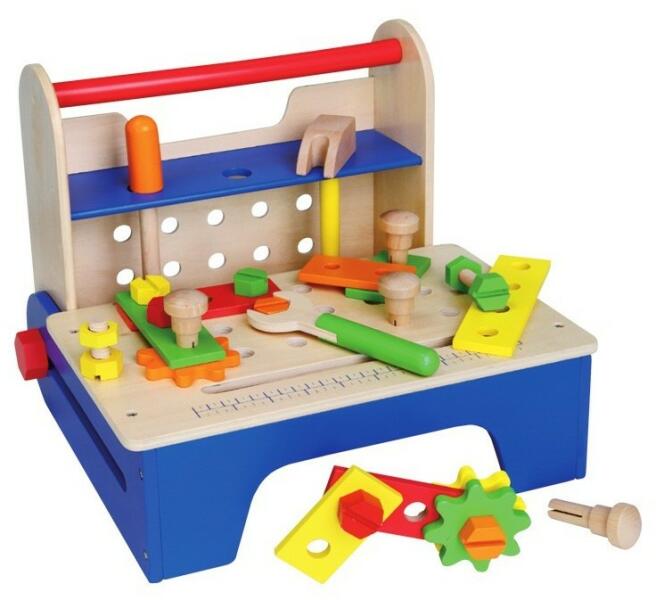 Barkácskészlet kis szerelőknek. Ebben a munkapaddá alakítható, hordozható dobozban mindenféle szerszám megtalálható. Be kell verni egy szöget a falba? Meg kell húzni a kilazult csavart? Nem probléma! A dobozban található kalapács, csavarhúzó és csavarkulcs, ezekkel minden megszerelhető. A készlethez tartoznak még menetek, csavarok is. A barkácsolni vágyók egész nap dolgo