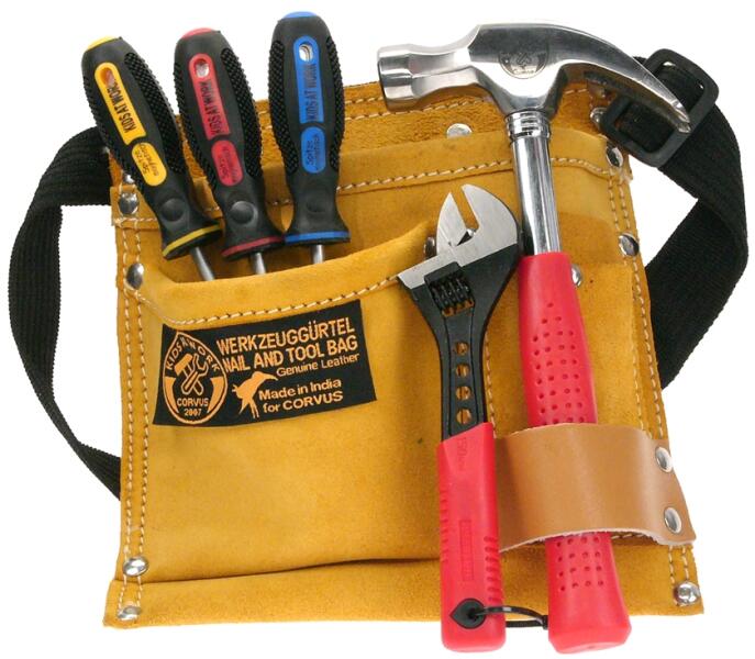 Bőrrel kombinált szerszámtartó öv és a belevaló szerszámok. Praktikusan használható, strapabíró és remek minőségű bőrrel kombinált szerszámtartó öv. Ha azt szeretnéd, hogy a szerszámok mindig kéznél legyenek. A készletben benne van 1 db nagy állítható csavarkulcs, 1 db mágneses hegyű lapos csavarhúzó, 1 db mágneses hegyű kicsi csillag csavarhúzó, 1 db mágneses