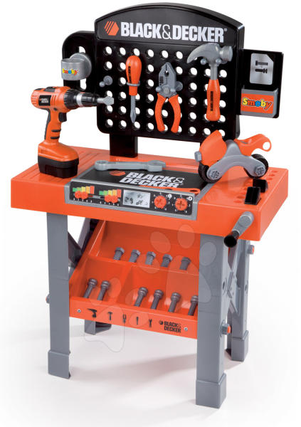 A Black&Decker szerelőasztal és elektronikus Quatro szett egy gyönyörű és nagyon attraktív játék készletet alkotnak, amely minden kisfiúnak alkalmas 3 éves kortól. Ezek a csodaszép játékok a megbízható francia Smoby gyártótól származnak. Gyermekei maximális biztonsága és órákig tartó szórakozása garantált a Smoby játékokkal. Valósághű dizájnja , kidolgozott