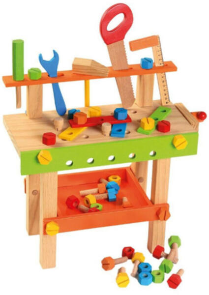Bino world of toys munkapad szerszámokkal, játék gyermekeknek 3 éves kortól (fa játék kiegészítőkkel, elősegíti a kézügyességet és a szem-kéz koordinációt, gyermekjáték 50 darabbal), többszínű A Bino world of toys munkapad szerszámokkal optimális gyermekgondozási kiegészítő és játék 36 hónapos korú gyermekek számára. Amellett, hogy a kis kézművesek jól szór
