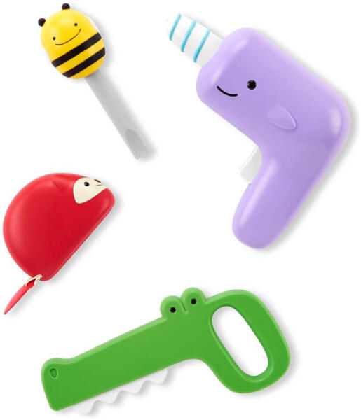 A kis építők imádni fogják a ház körüli dolgok javítását a ZOO® csapatával! Ez a cuki 4-részes szerszámkészlet, a krokodilfűrész, ami előre-hátra mozog, a róka designú mérőszalag, a méhecske csavarhúzó, és a forgó narvál fúró, támogatja a játékot, a finommotorikát, a kéz-szem koordinációt és egyéb készségeket. Jellemzők: 4-részes készlet tartalmazza a