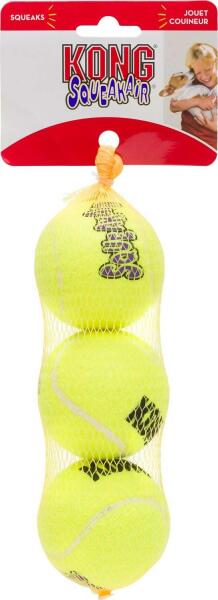 3darabKong Squeakair (Air Squeaker) sípolós, teniszlabda formájú minőségi kutyajáték gumiból fogbarát borítással. Több méretben kapható.