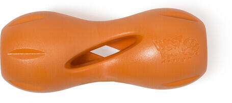 A West Paw díjnyertes játékát, a Qwizl-t brilliáns módon úgy tervezték, hogy sokáig megőrizze a drága jutalomfalatokat és hosszú időre lekösse a kutyusokat. Belső kialakítása a különböző méretű jutalomfalatokhoz lett igazítva, míg a játék oldalára elhelyezett nyílásokon keresztül áradnak az ínycsiklandó illatok és lehetővé teszik a finom falatok kóstolgatás