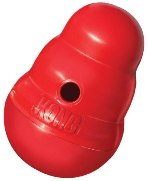 KONG Wobbler kutyajáték A KONG Wobbler nem csak egy játék, hanem egy élmény kutyájának. Körte formájának köszönhetően kiszámíthatatlan forog, így tartós elfoglaltságot és tréninglehetőséget kínál kedvencének. Ha megtöltöd kutyád kedvenc falatjaival elősegítheted a lassú táplálkozást és a mozgást. A termék főbb jellemzői és előnyei: Egyedi körteforma: A k