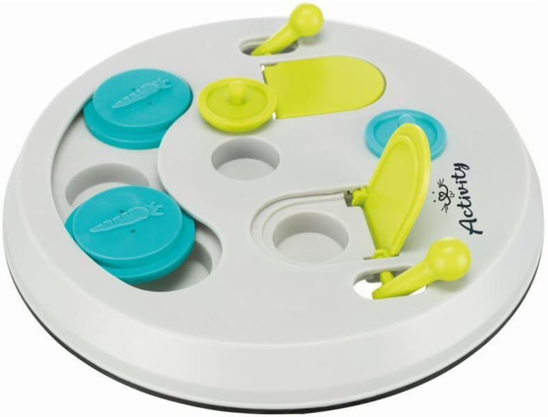 Trixie Játék Flip Board 23cm, műanyagSzórakoztató és kihívást jelentő játék rágcsálóknak:A Trixie Játék Flip Board egy szórakoztató és kihívást jelentő játék, amely tökéletes kisállatod mentális és fizikai aktivitásának fokozására. Műanyagból készült, és 23 cm átmérőjű, így ideális nyulaknak, tengerimalacoknak és más kis rágcsálóknak. Hogyan működ