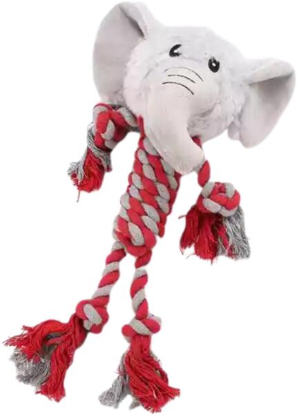 Fedezd fel az Elefántos rágható plüss kötél kutyajátékot, amely a különleges designjával és robusztus kialakításával biztosítja, hogy kedvenced hosszú órákig élvezhesse a játékot. Ez a 30 cm hosszú játék kiválóan alkalmas minden méretű és korú kutya számára, és a gyapjúkötélből készült erős szerkezet, valamint az extra tartós plüss anyag kombinációja re