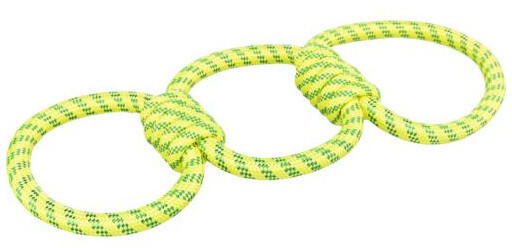 A Trixie Aqua kötélkarika egy szórakoztató és tartós játék, amely ideális kutyák számára. Kötélből készült, így erős és rágásálló. A játék közepén egy karika található, amely megkönnyíti a kutyák számára hogy megragadják és hordozzák. A kötél hossza 42 cm, így ideális kis és közepes méretű kutyák számára. A Trixie Aqua kötélkarika kiváló játék