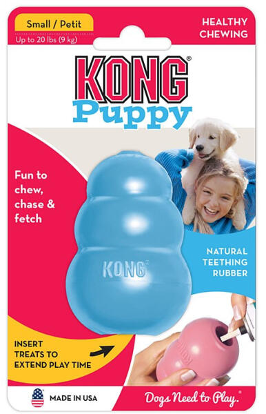 A KONG Puppy kifejezetten a kölyökkutyák 28 tejfogához lett kifejlesztve, a legpuhább gumi a KONG kínálatában. A KONG Puppy természetes gumi formulája extra-tartós és kiszámíthatatlanul pattog, egyszerre elégítve így ki a kutyák rágcsálás és játék iránti ösztöneit. Kiválóan le tudja foglalni kedvencét, ha KONG játékait száraztáppal, jutalomfalattal, KONG Snack-kel