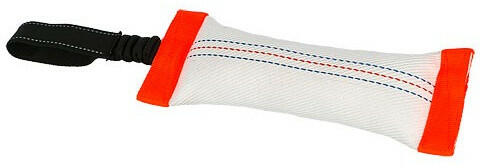 tartós, majdhogynem elpusztíthatatlan, tűzoltótömlő anyagból különösen harapásálló a belső gumiborítás úszik a vizen a neon narancssárga hímzésnek köszönhetően könnyebben megtalálható csuklópánt fényvisszaverő csíkokkal hossz: 30cm