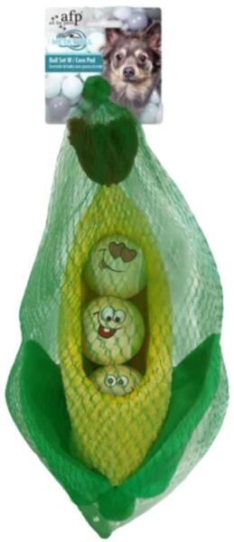 Ez a labdakészlet egy kukoricahüvelybe van csomagolva, és játék közben recsegő hangokat ad ki. Az AFP Meta Ball készlet 3 teniszlabdát tartalmaz vicces arcokkal és természetesen egy nyikorgóval. Recsegő hangokkal mind a 3 labda. Kielégíti a kutya vadászösztönét.