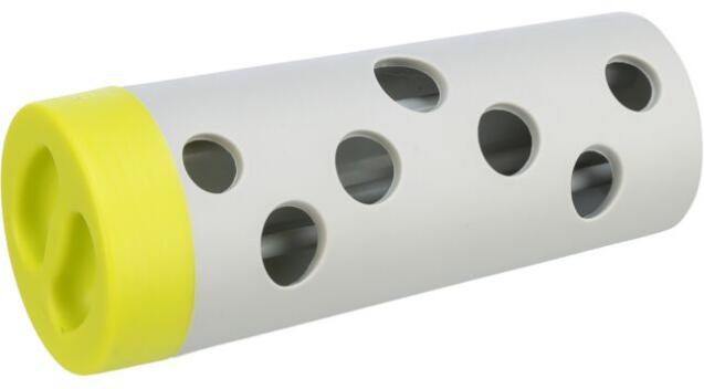 Műanyag mag csendesen futó gumibevonattal Mérete: 6cm átmérőjű, 5 x 14 cm 3 kivehető rúd a kiadott finomságok mennyiségének szabályozásához Felcsavarozhat Anyaga: műanyag/TPR Mosogatógépben mosható