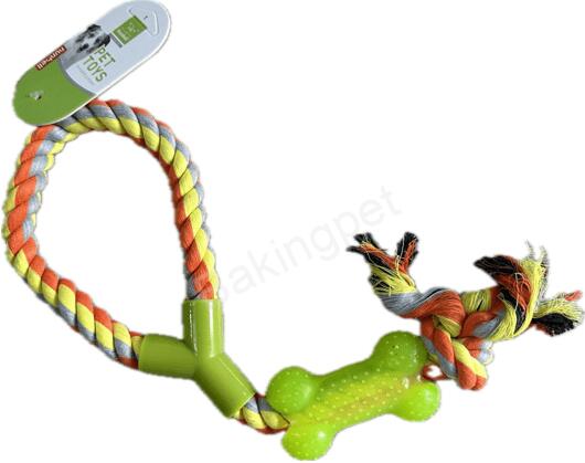 A könnyű, de mégis erős, pamutszálból készülő kötél kutyajáték közben még a fogakat és fogközöket is kiválóan tisztítja. Foggantyújával lehet a kutyával játszani.