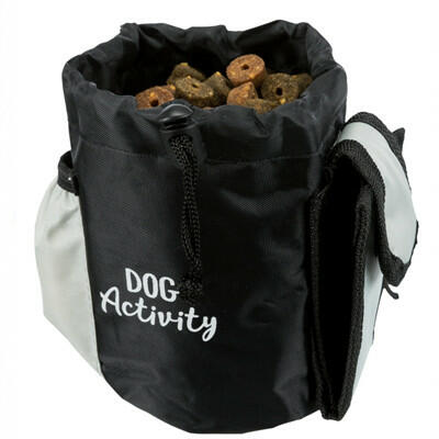 Trixie Dog Activity jutalomfalat tartó húzózsinórral zárható levehető vállpánttal tépőzáras rögzítés külső zsebekkel nylon/poliészter vízálló fekete/szürke színű