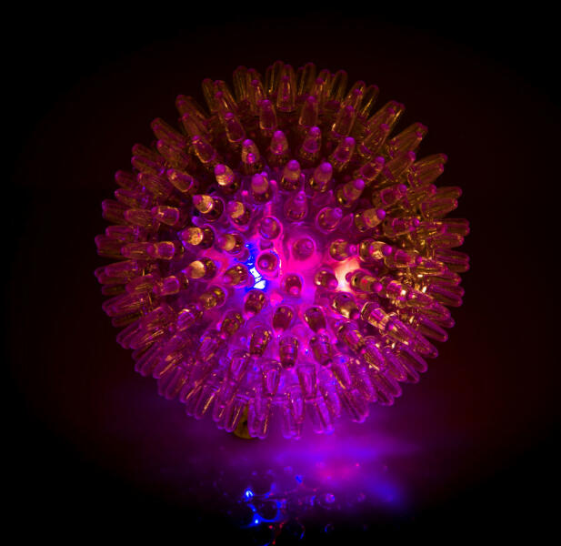 Kutyajáték puha gumiból, LED lámpával felszerelve Hasznos eszköz, hogy a kutyája jól érezze magát Mérete: 8,5cm Ez a kutyáknak szánt LED labda szórakoztató és lehetővé teszi , hogy a nap bármely szakaszában jól érezze magát. A játék puha gumiból készült és az egyenetlen felületnek köszönhetően kellemes masszírozó hatással bír.
