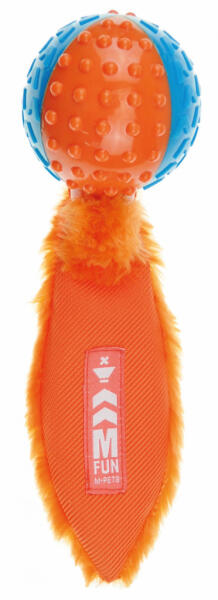 Csipogó labda kisállatok részére. Ez az élénk színű labda nemcsak látványos, hanem sípoló belseje révén izgalmas játékszer is. Tartós hőre lágyuló gumiból (TPR) készült, ellenáll a rágásnak, harapásnak. Hosszú órákon keresztül lefoglalja kedvencedet, de közös játékra is ideális választás. A csipogó hang kikapcsolható. A labdát egy hozzá csatolt plüss faro