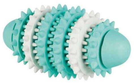 Trixie Denta Fun Rugby Ball - játék (fogtisztítós, mentolos rugbylabda) kutyák részére (15cm)A Trixie Denta Fun sorozat kutyáink szájhigiéniáját és a fogazat egészségét hivatott megőrizni. A Dentafun labda természetes alapú gumiból készült így nem okozhat gondot kedvencünknek. A felület kialakítása pedig masszírozza kedvencünk ínyét, és így segíti eltávolítani a
