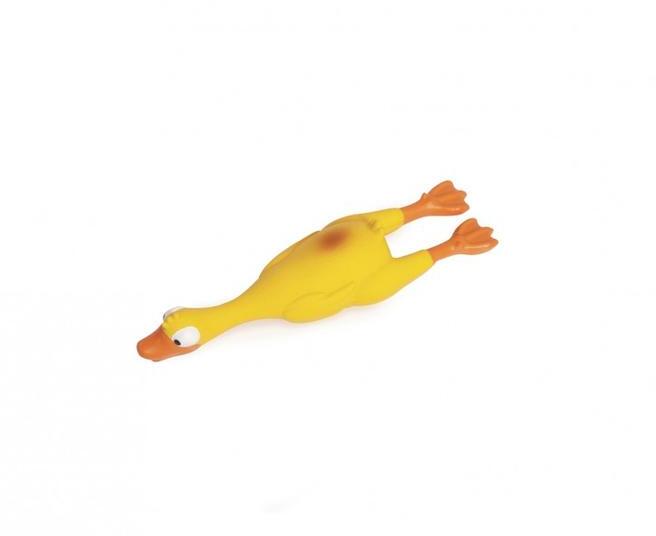 Latex sípolós játék kacsa kutyáknak, 24 cm-es nagyságú.