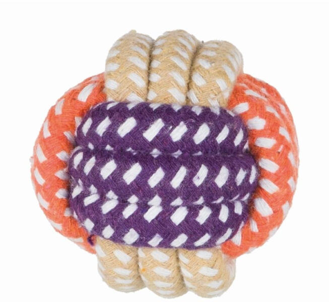 Trixie Játék Labda Kötélből (6 cm)Kiváló minőségű játék kutyáknak, aktív időtöltéshez és szórakozáshoz!A Trixie Kötél labda egy strapabíró játék, mely ideális kisebb kutyák számára. A labda puha, szövet borítású, kötéllel van ellátva, így könnyen elkapható és hordozható. A játék remek szórakozást nyújt kutyádnak, miközben segít fejleszteni fogásza