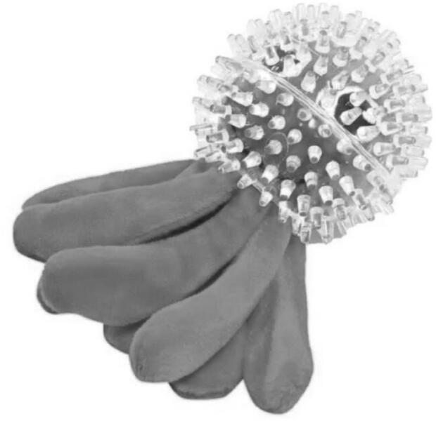 A Tüskés fejű polip kutyajáték 2 in 1 egy szórakoztató és tartós játék, amely egyesíti a színes, puha plüss anyagot és a tüskés gumit, hogy fokozza a kutyája játékélményét. Az áttetsző tüskés golyóval rendelkező fej segít a kutyája fogainak tisztításában, míg a puha plüss karok biztosítják a kényelmes rágás élményét. A játék kialakítása elősegíti a