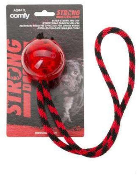 Comfy toys for dogs with strong jaws - játék (labda kötélen) kutyák részére (45x6,5x6,5cm) - erős állkapocsú, aktív kutyák számára készült - játékok rendkívül tartós műanyagból készültek, amely ellenáll a harapásnak és rángatásnak.